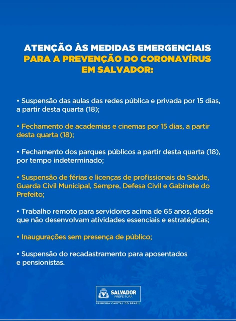 Medidas Emergenciais – Prefeitura de Salvador (16/03/20)