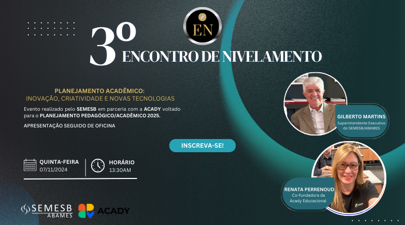 Teremos o prazer de receber Renata Perrenoud – Co-fundadora da Acady Educacional, Dra. Em Engenharia Mecânica, pela Unesp e Fellowship na Universidade de Harvard, atuando como pesquisadora em aprendizagem ativa (metodologias e processo de avaliação) e uso tecnologia na sala de aula.